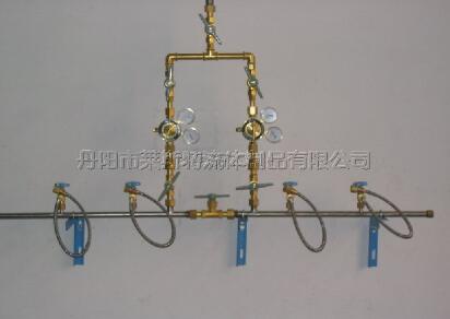 氣體匯流排指瓶裝高壓氣體,通過此設備減壓到一定的使用壓力,是集中供氣體的一種設備。氣體匯流排由左右兩根匯流主管道組成,中間有四只高壓閥門,分別控制左右兩組匯流管,每組有相稱數目的分閥,軟管及卡具連接氣瓶,中間裝有一塊高壓表,氣體匯流排用來檢測匯流管內的壓力,高壓閥門上方分別有兩組減壓器,以便控制調節使用壓力及流量,減壓器上方分別有兩只低壓閥門,用來控制兩排氣體匯流排切換時的低壓氣體,匯流低壓主管道裝有一只低壓總閥門,用來控制低壓管道的氣體。