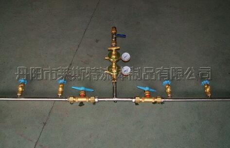 1、將氣瓶逐個與軟管連接,在氣瓶閥全部關閉的情況下,將所要用的一邊的匯流排上的高、低壓截止閥,直角閥全部打開。